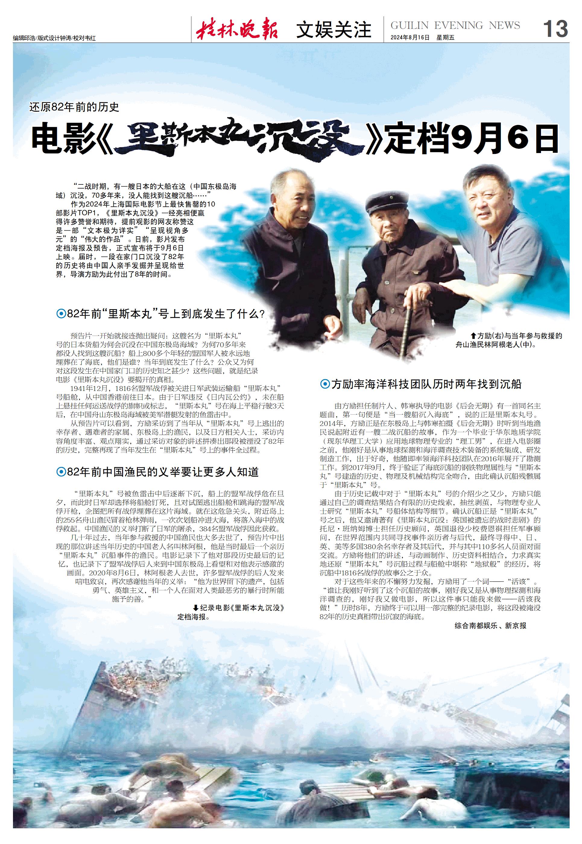 电影《里斯本丸沉没》定档9月6日