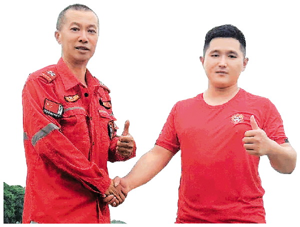 ↑搜救队员救援溺水者。(受访者供图)