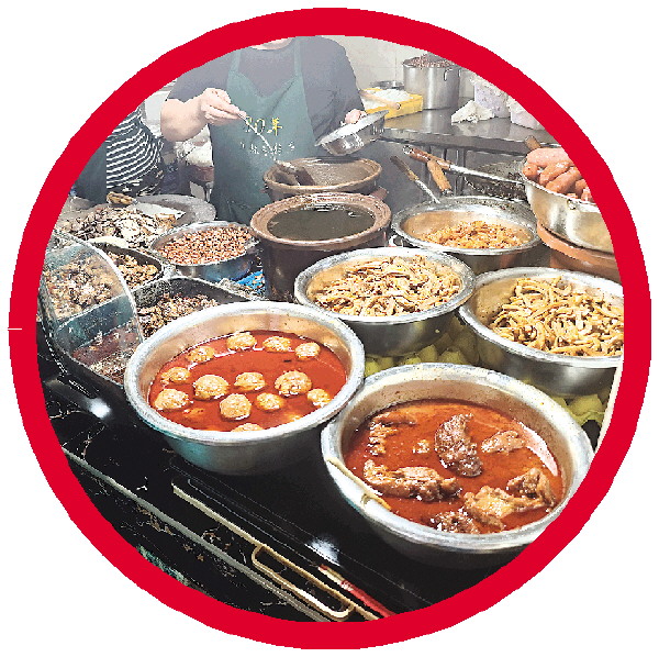 小店正中间是一条直通后厨窗口的过道,两旁摆满了木质餐桌。记者来到店里的时候,已经是下午一点半,但顾客依旧把大厅坐得满满当当。在过道中排队的时候,旁边顾客的嗦粉声,还有后厨飘出来的卤菜香气,令人垂涎欲滴。