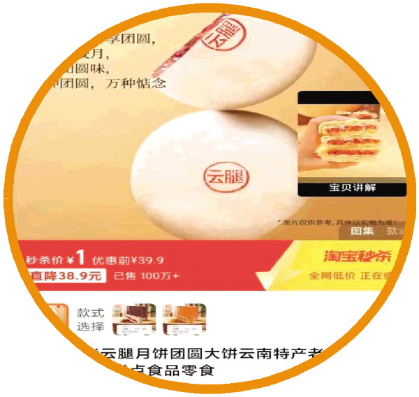 记者注意到,该款商品名为嘉华云腿团圆大饼,共有两个款式,净含量400克,原价为39.9元,此前曾标价1元,目前该商品已经下架,下架前总销量超过100万件,商品详情页还承诺下单后48小时内发货。而到了8月22日15:35,该商品的购买链接失效,原购买链接显示:“商品过期不存在”。