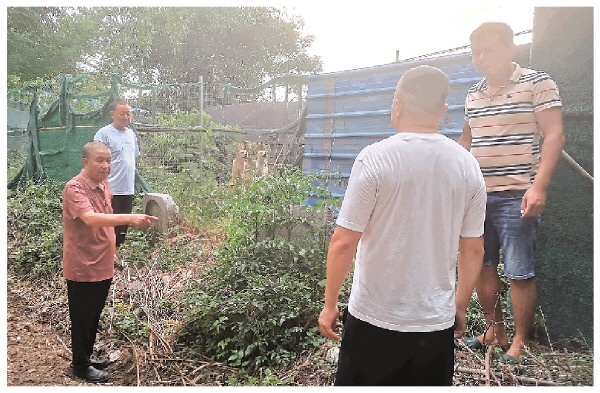 ↑全用祥(左二)正在和队员们一起协调处理土地纠纷。(大河乡政府供图)