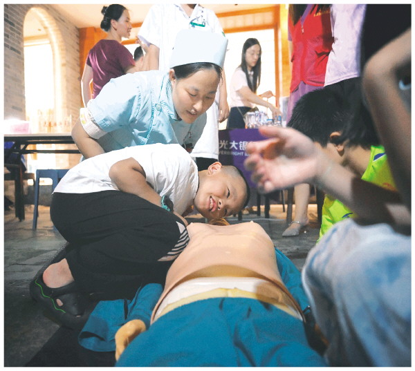 29日晚上,秀峰区秀峰街道解东社区人大代表联络站开展“民生夜话”活动。秀峰区人大代表、社区干部、白龙派出所民警和爱心企业的志愿者面向居民开展法律咨询、反电诈宣传和讲授心肺复苏急救法。记者滕嘉 摄