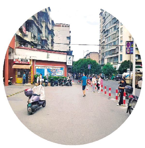 →桂林市第十七中学附近没有设置路边停车位,会车也困难,建议非机动车出行。 记者苏文娟 摄