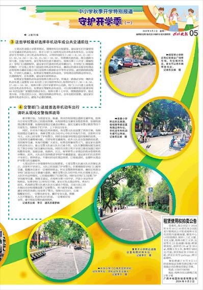 新学期开始,为营造安全、畅通、有序的校园周边道路交通环境,桂林市公安局交警支队已经提前部署,从校园周边交通安全隐患排查、加强校园周边勤务部署、加强校园周边交通违法整治、强化交通安全警示教育等四个方面发力,保障孩子们开学、上下学出行安全。