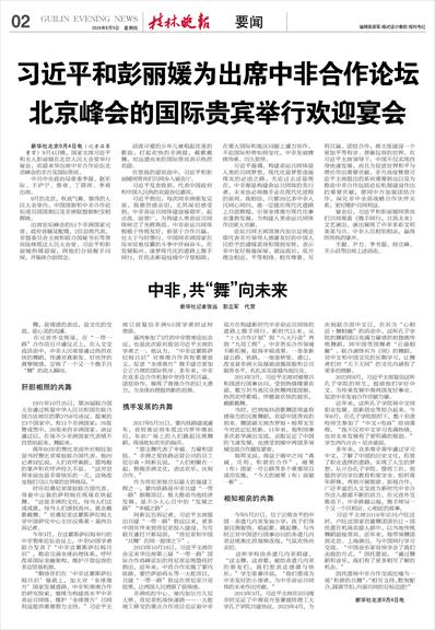 习近平强调,构建命运共同体是人类的共同梦想,现代化是梦想连接现实的必由之路。无论过去还是现在,中非都是构建命运共同体的先行者,未来也必将携手走在现代化进程的前列。我相信,只要28亿多中非人民同心同向,就一定能在现代化道路上共创辉煌,引领全球南方现代化事业蓬勃发展,为构建人类命运共同体作出更大贡献。