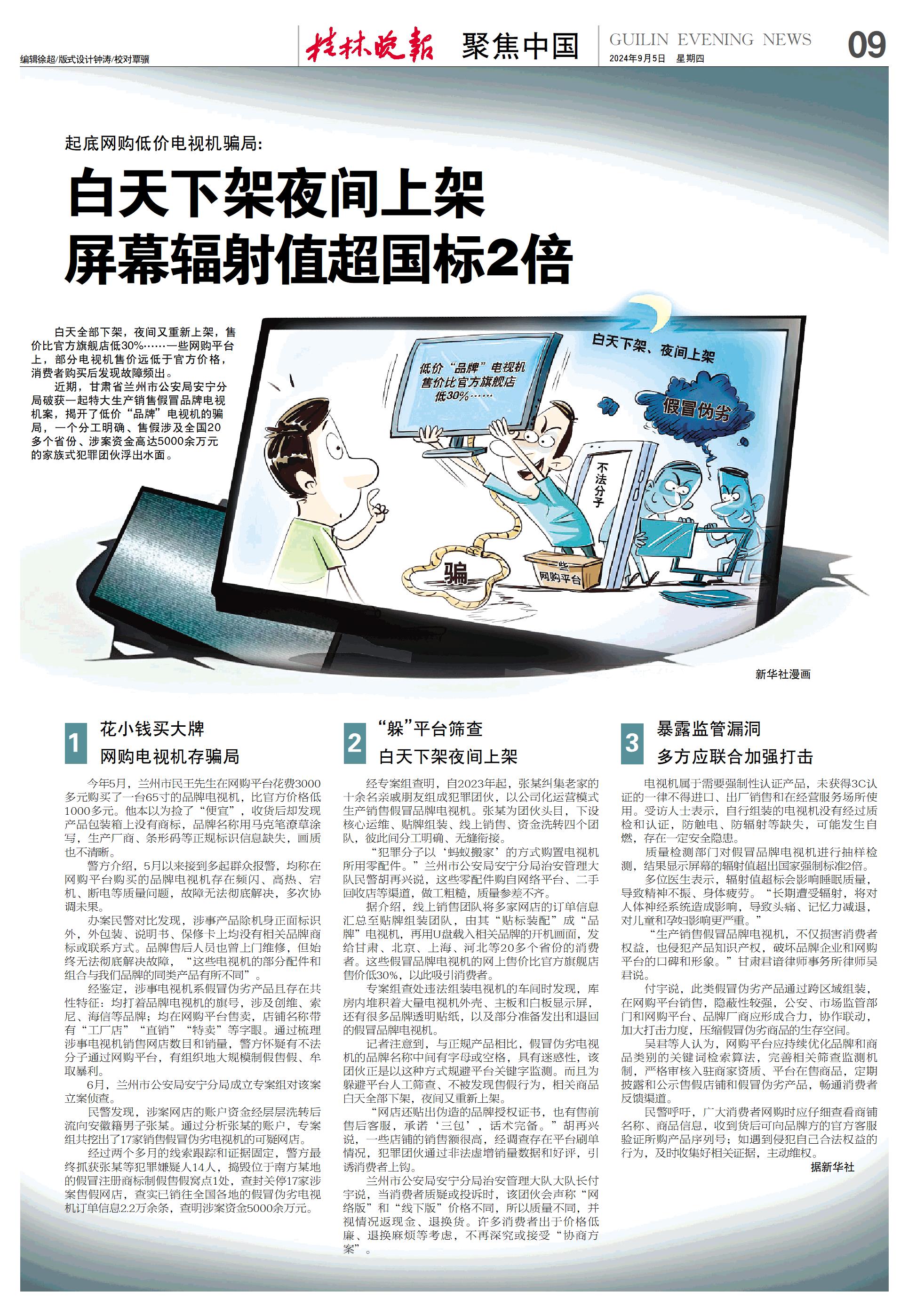 白天全部下架,夜间又重新上架,售价比官方旗舰店低30%……一些网购平台上,部分电视机售价远低于官方价格,消费者购买后发现故障频出。