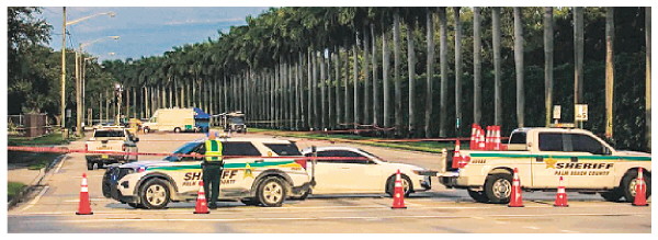 9月16日,佛州西棕榈滩市特朗普国家高尔夫球俱乐部球场外的街道被封锁。