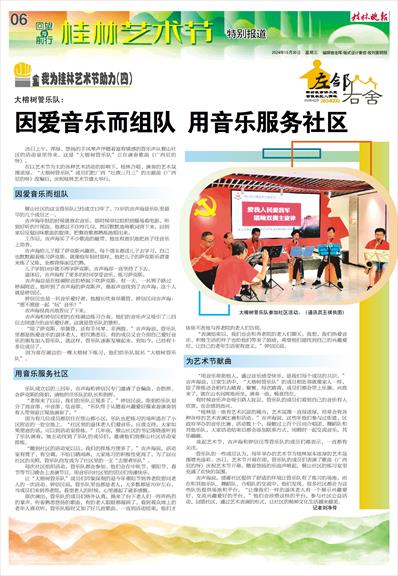 “桂林是一座有艺术沉淀的城市,艺术氛围一直很浓厚,经常会有各种各样的艺术表演比赛和活动。”吉声海说,这些年他们参与过街道、区政府举办的音乐比赛、活动数十个,接触过上百个民间合唱团、舞蹈队和其他乐队,大家活动结束后都会添加联系方式,闲暇时一起交流音乐,其乐融融。