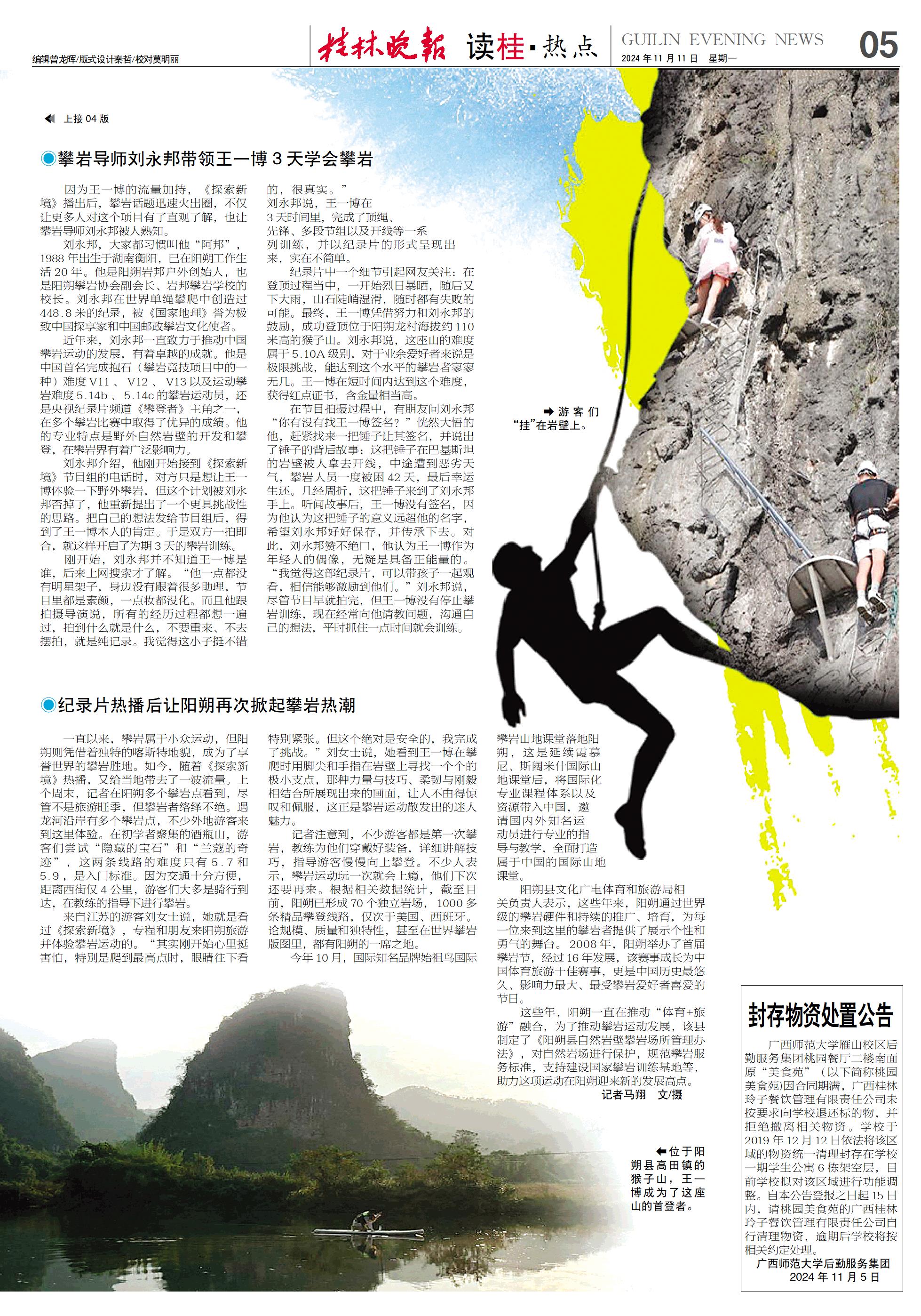 纪录片热播后让阳朔再次掀起攀岩热潮