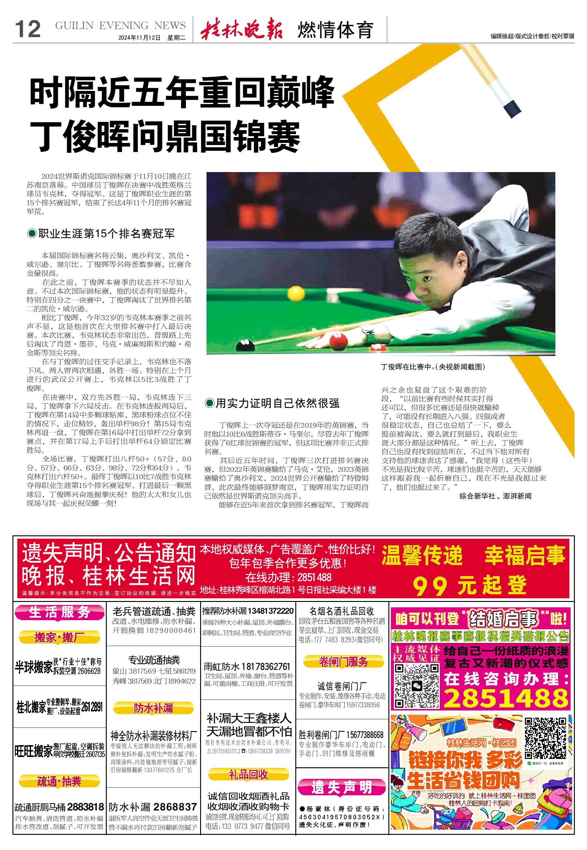 新闻 时间:2024年11月12日 来源:桂林晚报
