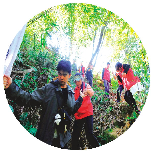 两水苗族乡山高路陡,队伍行走的路线上有多条山路,最高海拔1100多米。其间,队员们翻山越岭,穿过小溪,留下了深刻的回忆。在蜿蜒的山路上,鲜艳的红色队伍,给初冬的山林增添了一抹别样的色彩。