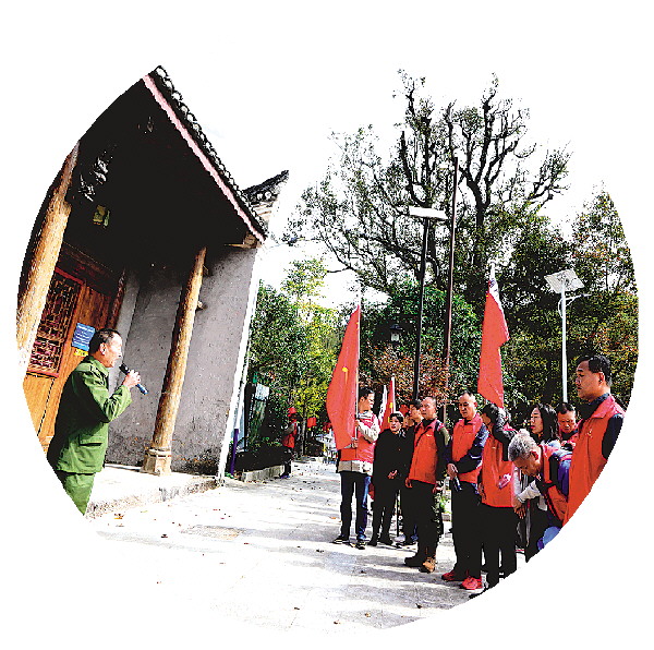 上午10点30分,队伍在塘洞村西寨红色教育基地集合,经过简单动员,随即出发。在赵氏宗祠,资源县退役军人事务局邀请老兵讲了一堂精彩的党课。