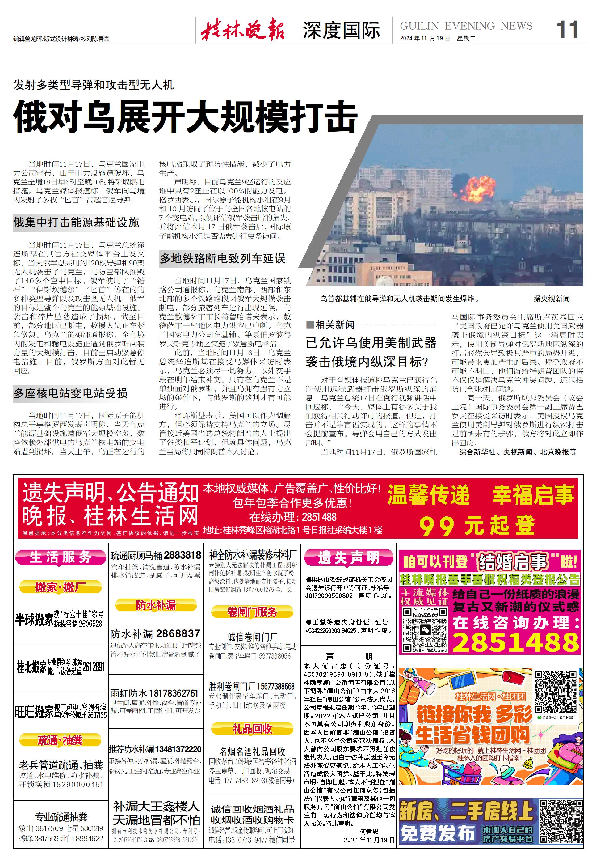 新闻 时间:2024年11月19日 来源:桂林晚报