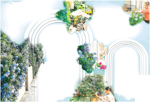日前,记者见到了住在清华园小区的范桂红,小区外的花墙有一部分就是她种植的。记者看到,她和好几位邻居都在阳台和屋外的绿地上种植了不少植物,这些植物已经连成了片,走在其中就仿佛进入了一个小花园。好几户居民种植的蓝雪花都有一部分爬出了墙外,形成了市民在外墙看到的花墙。