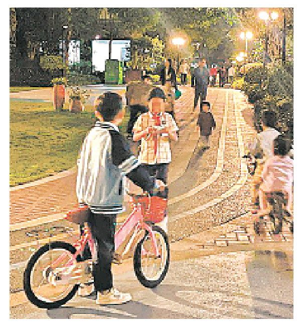 记者在南宁一小区内看到,几名孩子正在小区步道上骑车。