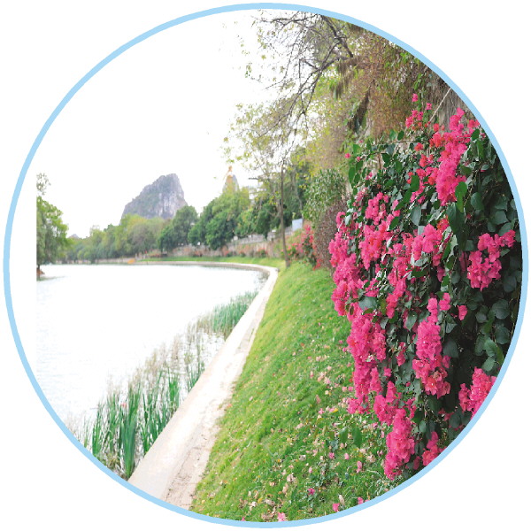 “东岸网红美人蕉面积约400多平方米,该区域为潜流湿地,总面积约2966平方米,种植的绿化植被除了美人蕉,还有芦苇、风车草、香蒲、千屈菜、黄菖蒲等。”桂林建安集团宁远河水质提升和生态修复工程项目部技术负责人龙溪越介绍,这次宁远河治理的思路是以“城市水下森林生态修复技术”为主的纯生态治水思路,通过构建以“挺水植物、沉水植物、底栖生物、浮游生物”为食物链结构的水生态平衡系统,来实现水环境自身的循环净化功能,达到水质改善的同时营造水体良好景观效果。项目共完成生态保护修复总面积10.39公顷,包括生态