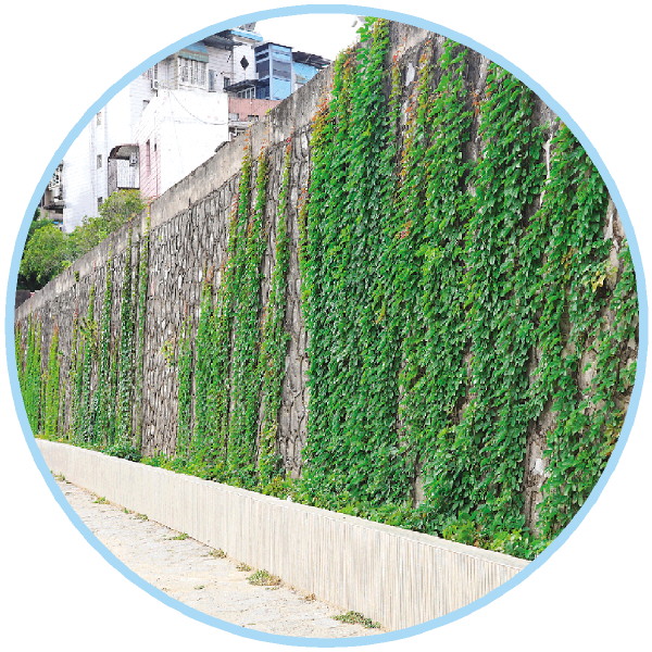西岸步道树池中种植的爬山虎长势不错。