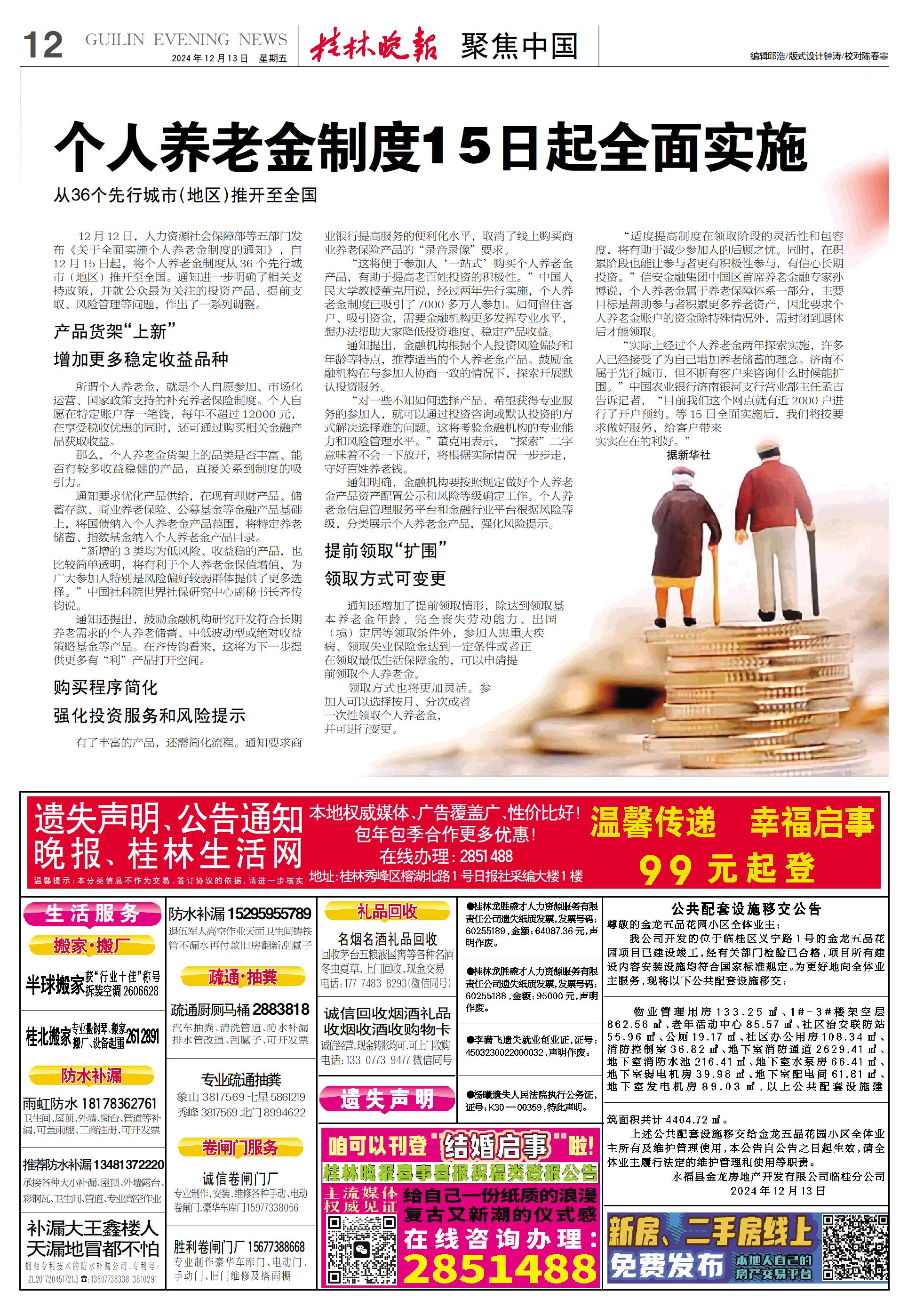 个人养老金制度15日起全面实施