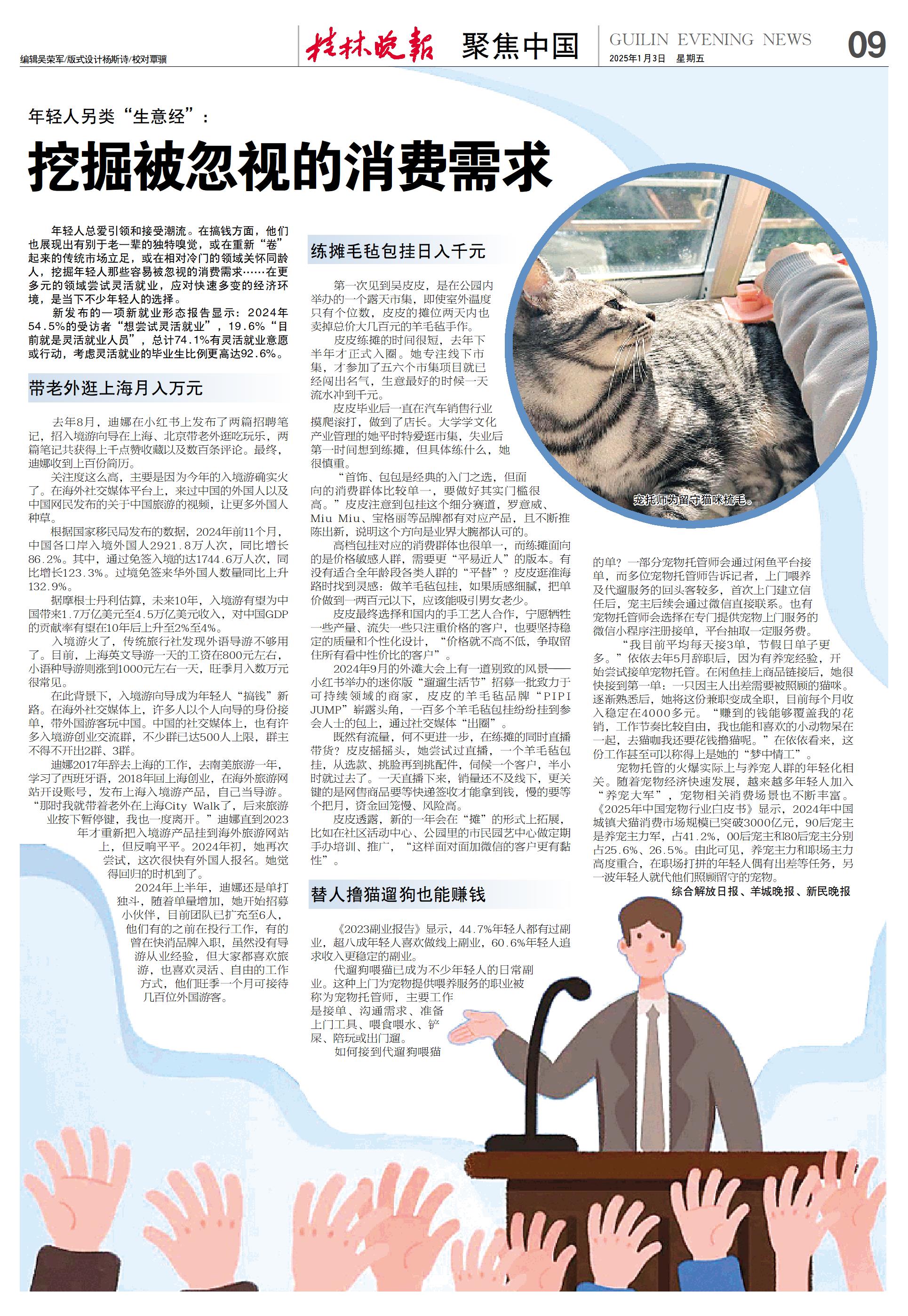 年轻人总爱引领和接受潮流。在搞钱方面,他们也展现出有别于老一辈的独特嗅觉,或在重新“卷”起来的传统市场立足,或在相对冷门的领域关怀同龄人,挖掘年轻人那些容易被忽视的消费需求……在更多元的领域尝试灵活就业,应对快速多变的经济环境,是当下不少年轻人的选择。