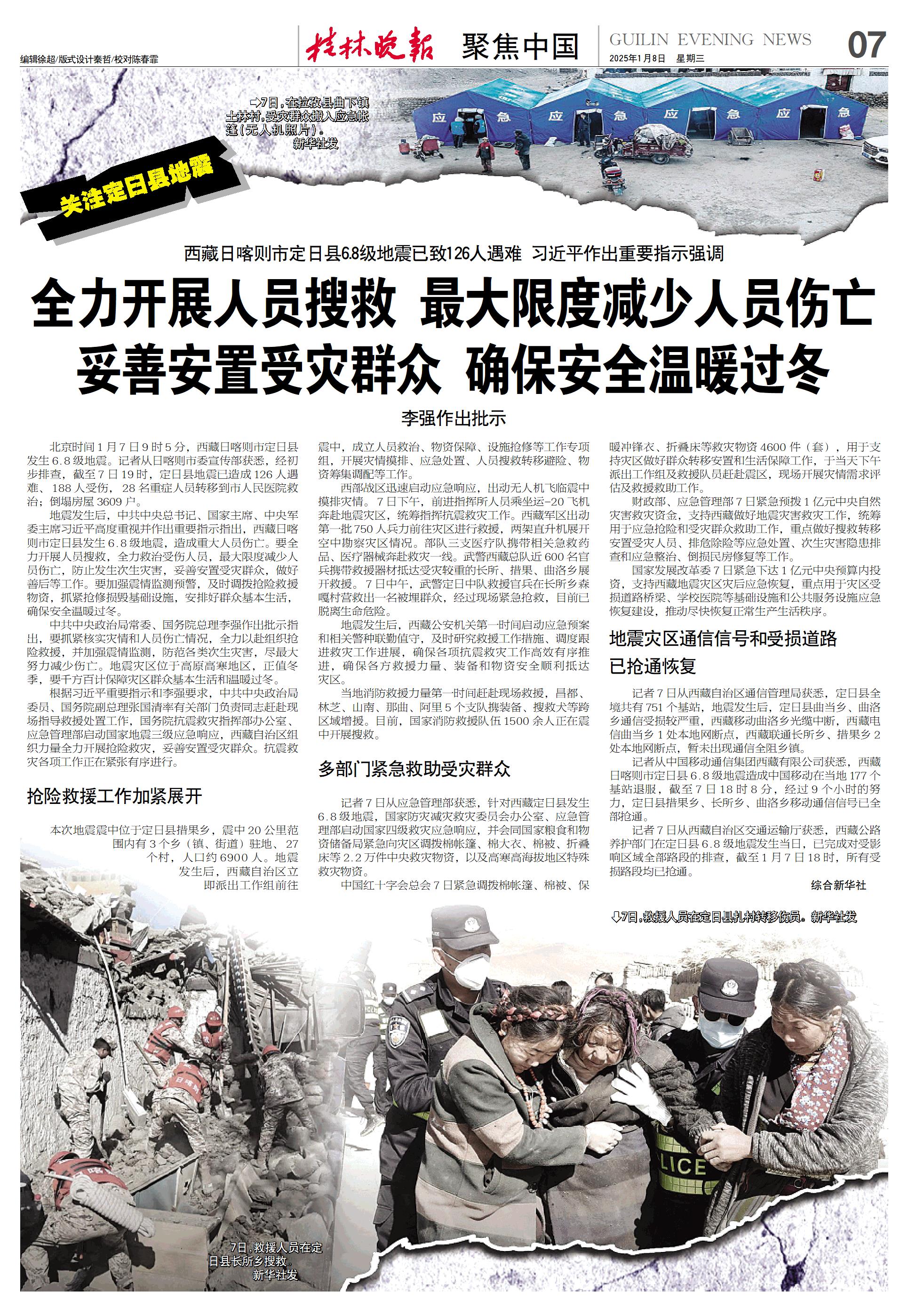 全力开展人员搜救 最大限度减少人员伤亡