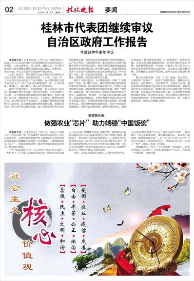 本报南宁讯(记者周绍瑜)1月14日,出席自治区十四届人大三次会议的桂林市代表团继续审议自治区政府工作报告。大家认真审议、深入思考、踊跃发言,为不断开创经济社会高质量发展新局面提出意见建议。市委书记、市长李楚,市人大常委会主任赵仲华参加审议。