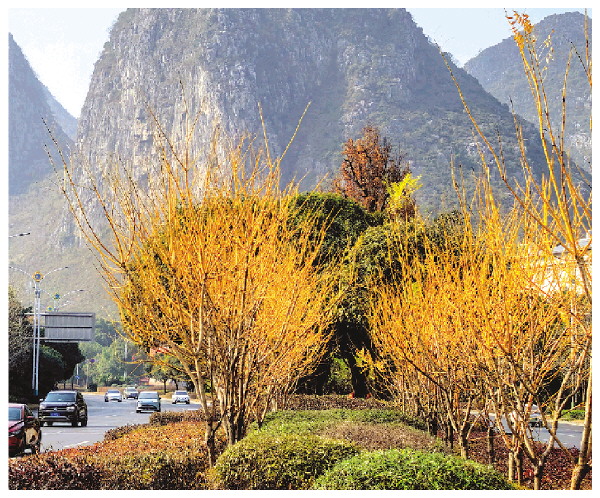 市林业和园林局相关负责人表示,由于养护成本低、病虫害较少,如今金枝国槐已经成为桂林城市绿化的“新宠”。“举办义务植树活动时,园林部门也向一些单位赠送了金枝国槐树苗,如今在越来越多的单位庭院、校园、小区、厂区、街头小游园,都能欣赏到金枝国槐的美。”