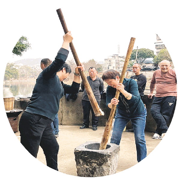 七星村的村民在舂粑粑。