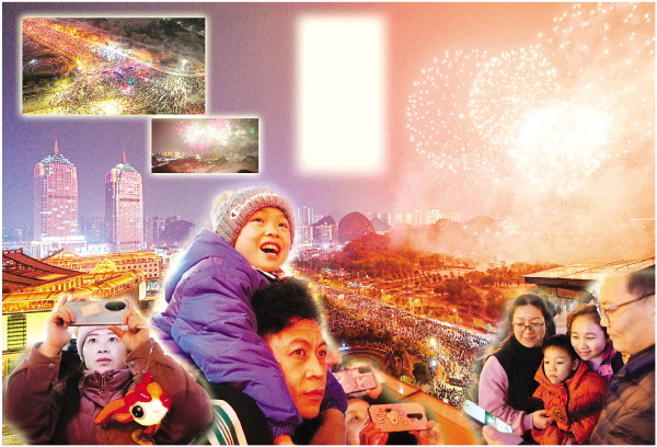 市民李先生表示,他和家人大年初一晚上在象鼻山观看了漓江烟火秀,元宵节晚上又在临桂新区欣赏了音乐烟花秀,这个春节让人印象深刻,“祝桂林发展越来越好,如烟花般绚丽多姿、活力满满”。