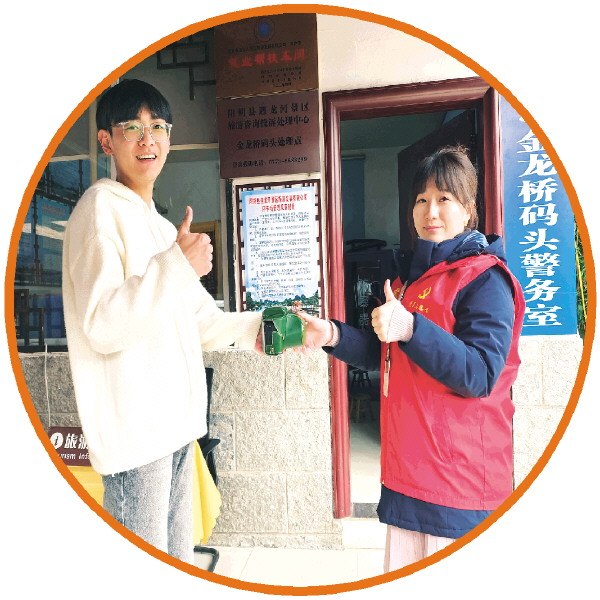 2月10日下午,阳朔湾码头,游客为5000元现金失而复得激动不已,当场拨打12345热线表示感谢。