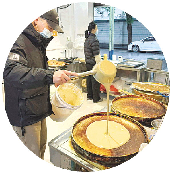 “刚出锅的饼不能马上就切来卖,要稍微等一下,确保饼内的水蒸气散去以后,外皮才能更酥脆,口感才会更好。”老板解释道。