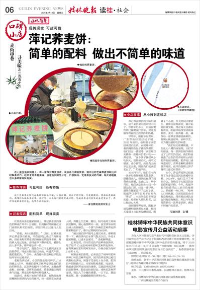 如今,萍记荞麦饼已经赢得了众多周边居民的喜爱和信赖。2024年,他们又开了两家分店,分别位于七星区的会仙路和建干路。今年,阳超华想在经营好这三家店的基础上,多创新一些口味。“桂林人口味挑剔,以前卖甜的会问有没有咸的,现在推出咸的还会问有没有辣的。所以今年我打算研究一款荞麦馅饼,满足不同客户的需求。”