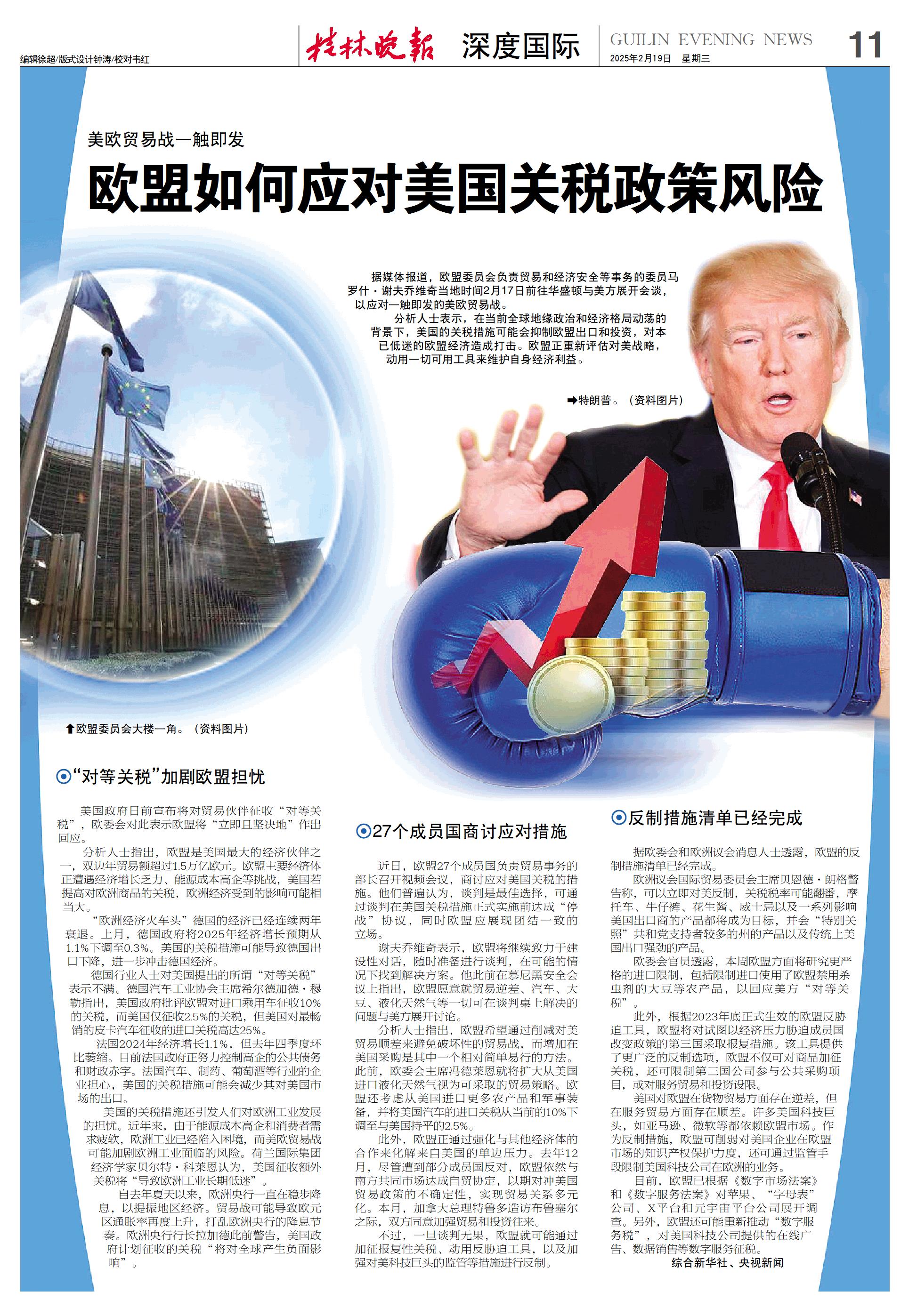 “对等关税”加剧欧盟担忧