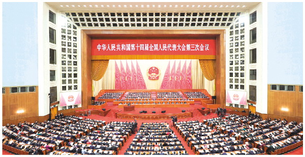 3月5日上午,第十四届全国人民代表大会第三次会议在北京人民大会堂开幕。 新华社记者丁海涛 摄
