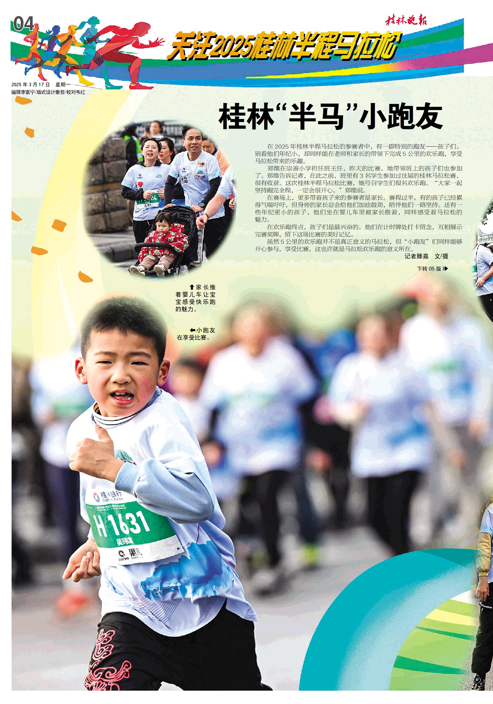 在2025年桂林半程马拉松的参赛者中,有一群特别的跑友——孩子们。别看他们年纪小,却同样能在老师和家长的带领下完成5公里的欢乐跑,享受马拉松带来的乐趣。
