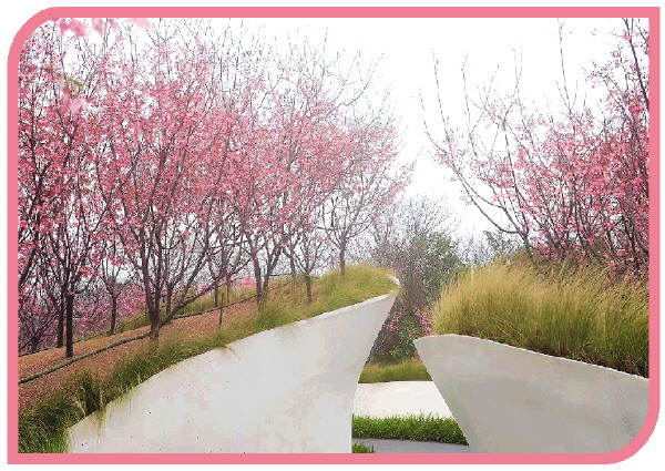 艺术走廊的设计借鉴了龙胜梯田,在这里欣赏拍摄樱花充满艺术范。