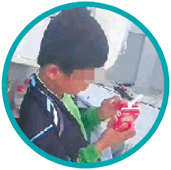 孩子在船上补充能量。