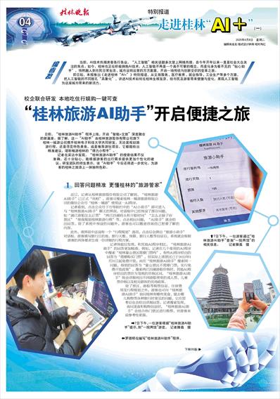 即日起,本报推出《走进桂林“AI+”》特别报道,从文旅服务、医疗教育、就业指导、工业生产等多个方面,把人工智能的不同脸孔“具象化”,讲述AI技术如何在桂林生根发芽,给市民及游客带来便捷与变化,展现人工智能为这座城市带来的新活力。