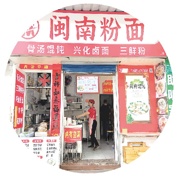 跟随导航来到叠彩路3号楼,“闽南粉面”的招牌进入眼帘。店铺约30平方米,仅设6张方桌,用餐高峰期需拼桌。