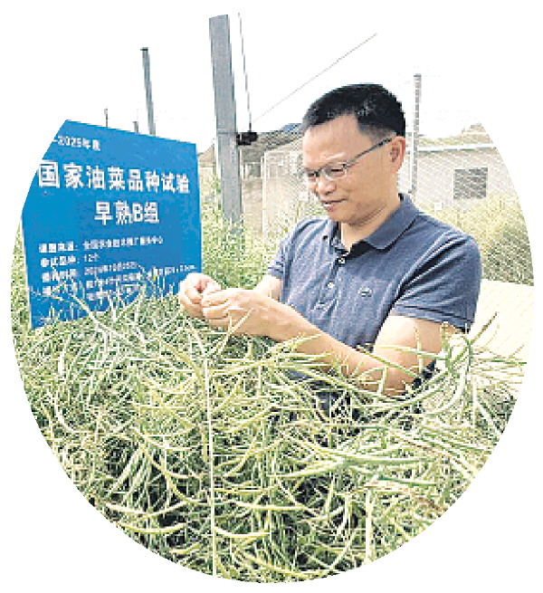 张宗急在市农业科学研究中心试验田查看试验油菜结籽情况。记者谭熙 摄