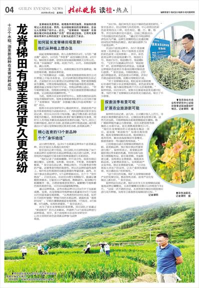 为此,桂林市农业科学研究中心、龙胜各族自治县科学技术情报研究所、桂林龙脊旅游有限责任公司共同开展了“龙脊梯田‘稻油旅’农旅融合模式科技成果推广示范”项目。