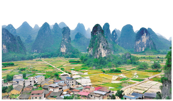 雁山区柘木镇东山村是桂林峰林密集之处,这里的山峰一座接一座,如同竹笋玉簪拔地而起,近看孤峰林立,远看重峦叠嶂,其间阡陌纵横、村舍掩映,一派田园风光。图为4月23日拍摄的东山奇峰美景。