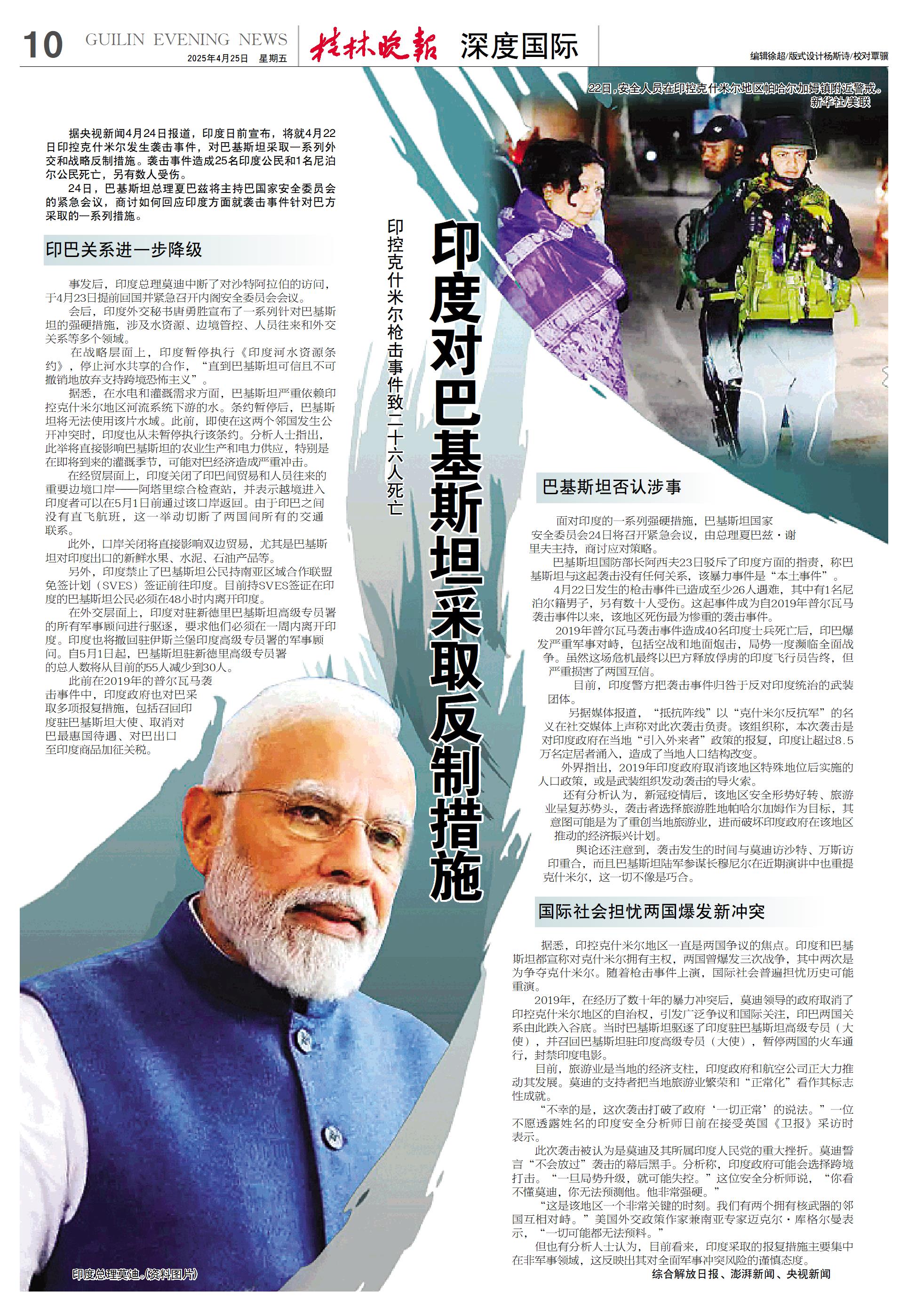此前在2019年的普尔瓦马袭击事件中,印度政府也对巴采取多项报复措施,包括召回印度驻巴基斯坦大使、取消对巴最惠国待遇、对巴出口至印度商品加征关税。