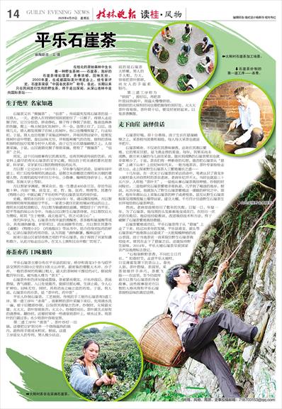“石根泉畔野茶香,不问红尘日月长。”阳春时节,走进平乐大刚村,只见薄雾笼罩下的茶山上,春光人影,茶叶碧绿。茶园里,采茶姑娘纤手弄巧,茶歌飞扬……在这里,至今仍流传着方以智与石崖茶的传奇故事,这些故事是对方以智的人格风骨和平乐石崖茶独特品味的真切诠释。