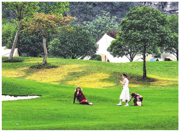26日,在桂海晴岚,一些市民趁着周末好天气来到这里享受难得的休闲时光。记者滕嘉 摄
