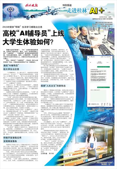 随着AI应用不断推广,“AI+”在桂林高校教育领域,也带来了新的变化。最近,市内一些高校陆续上线了“AI辅导员”。“AI辅导员”参考原来的辅导员职能,为学生提供教务、教学、心理辅导等,不仅能做学生学习生活中的贴心人,还能充当学生成长路上的引路人。
