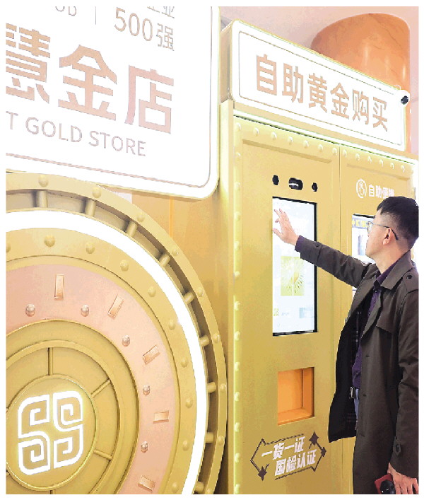 5月5日,在上海市普陀区一家商场内的“智慧金店”,市民了解自助黄金购买设备。