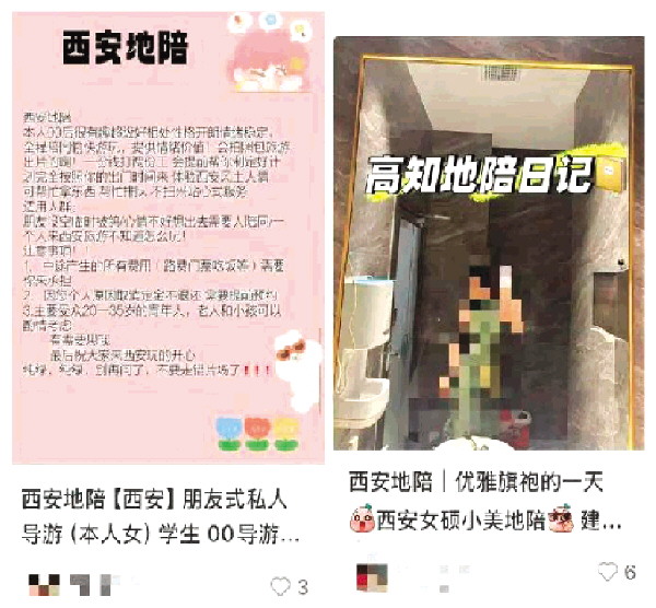 陪游从业者在社交媒体上发布的帖子。(网页截图)
