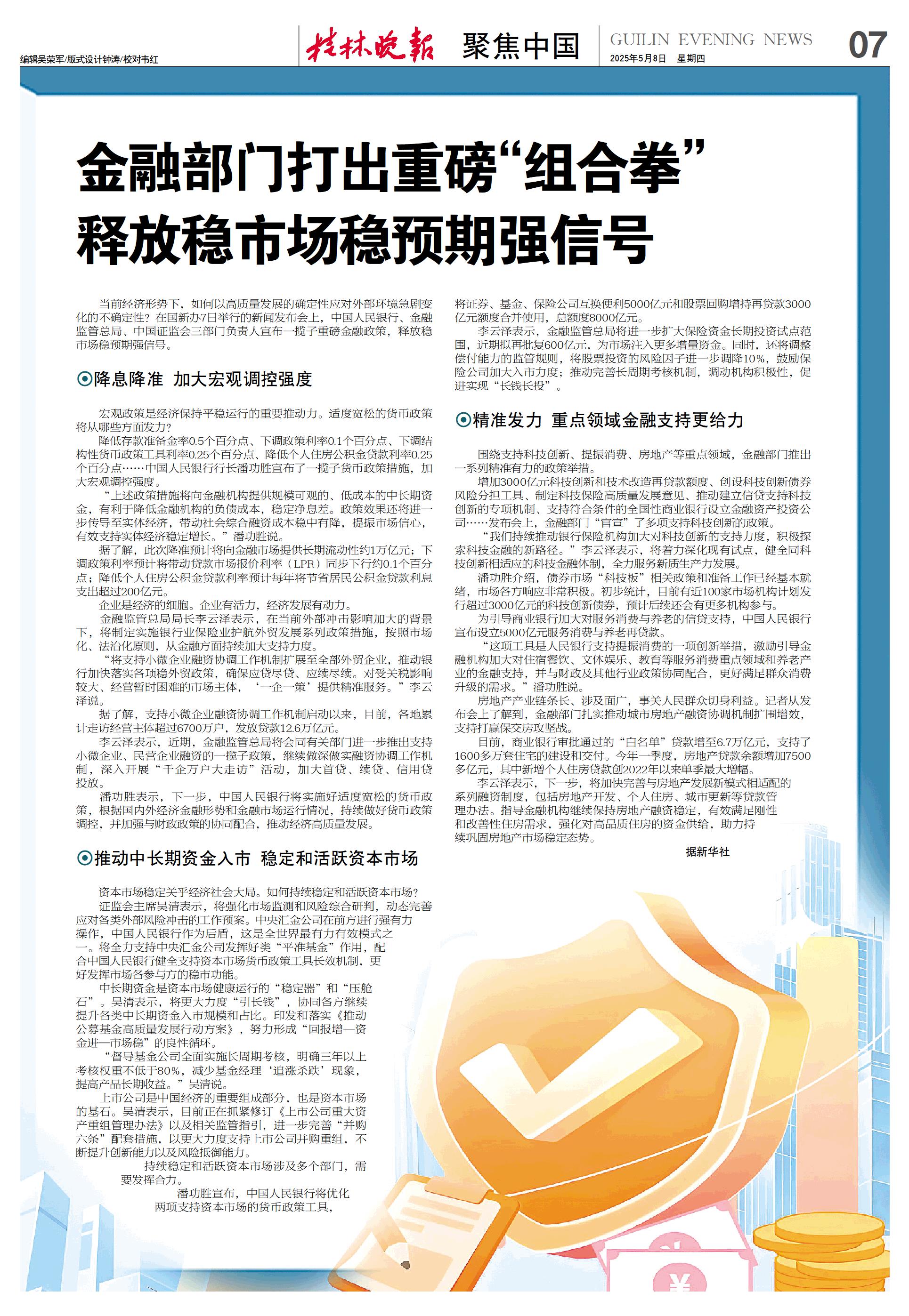 围绕支持科技创新、提振消费、房地产等重点领域,金融部门推出一系列精准有力的政策举措。