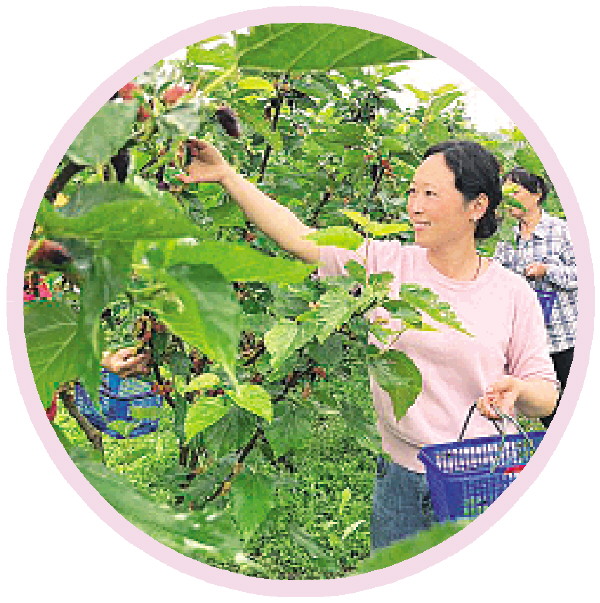李丽芳说,在种植桑树前自己做了不少功课。桑葚富含维生素C、维生素E,还富含花青素等抗氧化物质,同时它还含有丰富的膳食纤维,可以帮助肠道蠕动,维持肠道健康,桑叶也具有疏散风热、清肺润燥的功效。