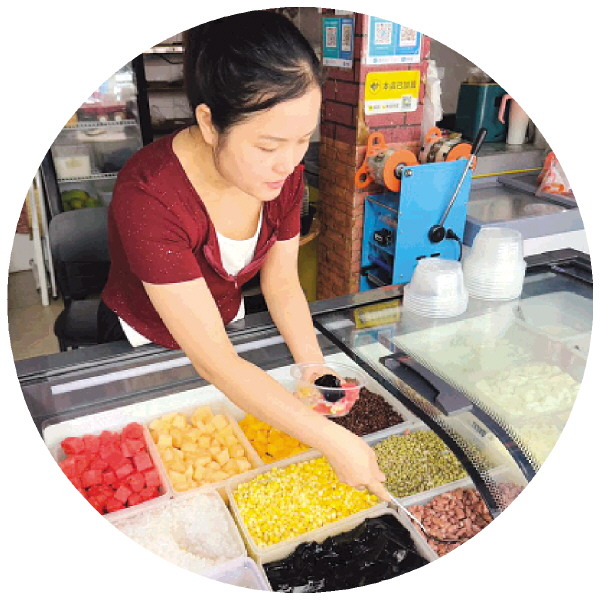 记者到店时正值午后,这是一天中最炎热的时候,然而店内却不断有人前来打包甜品。“老板,来份8块的清补凉!”“好嘞,稍等!”老板热情地回应道。只见她手脚麻利地在柜台间穿梭,脸上始终挂着亲切的笑容。